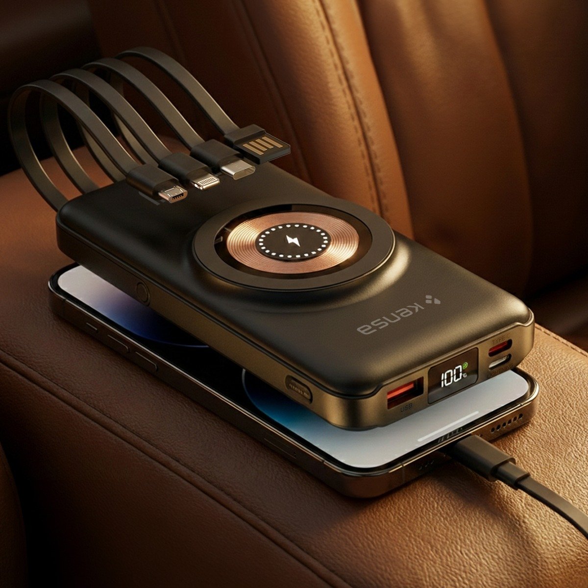 10.000 mAh Dahili Kablolu Wireless Hızlı Şarj Powerbank Siyah