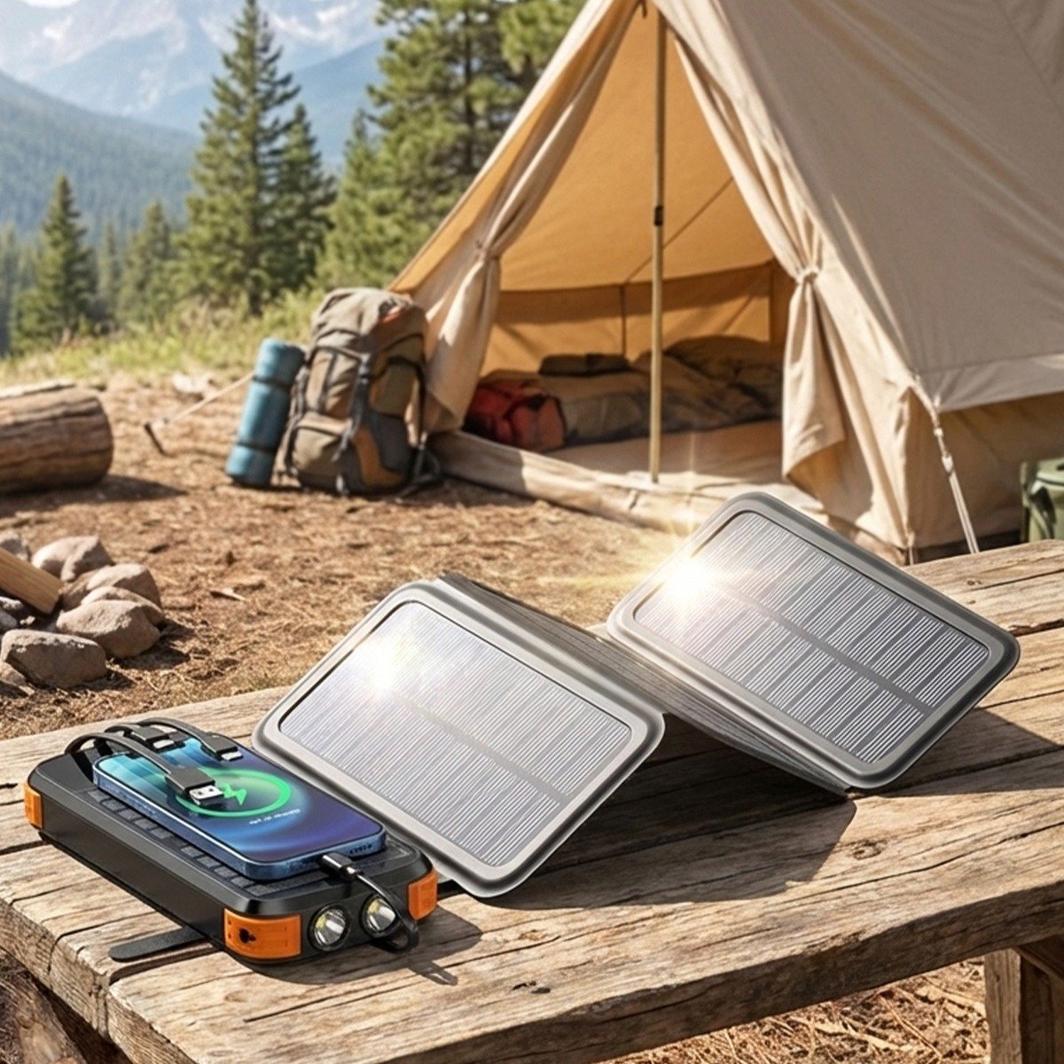 4 Katlanabilir Güneş Paneli – Güneş enerjisiyle çevre dostu ve sınırsız şarj. 20000mAh Yüksek Kapasite – Gün boyu tüm cihazlarınıza enerji sağlar.