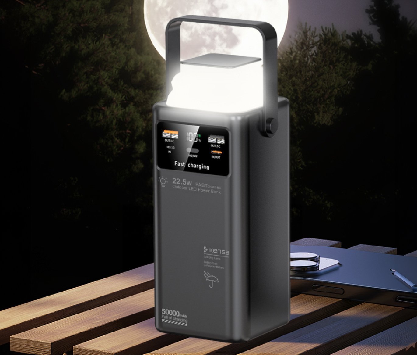 50.000 mAh Outdoor Işıklı Hızlı Şarj Powerbank