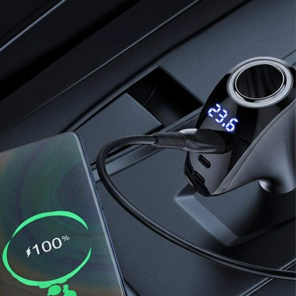 LED Göstergeli 90W Araç İçi Şarj Adaptörü, araçta enerji ihtiyacınızı tek noktadan karşılamak için tasarlanmıştır. 3 adet USB çıkışı sayesinde aynı anda birden fazla cihazı şarj edebilir, ek çakmaklık yuvası ile araç aksesuarlarınızı kullanmaya devam edebilirsiniz.